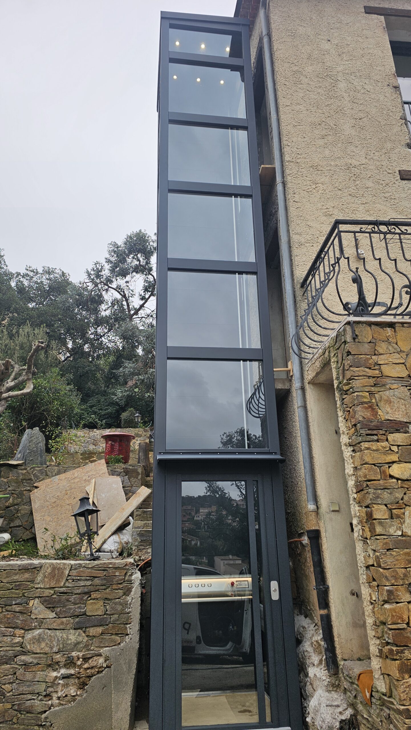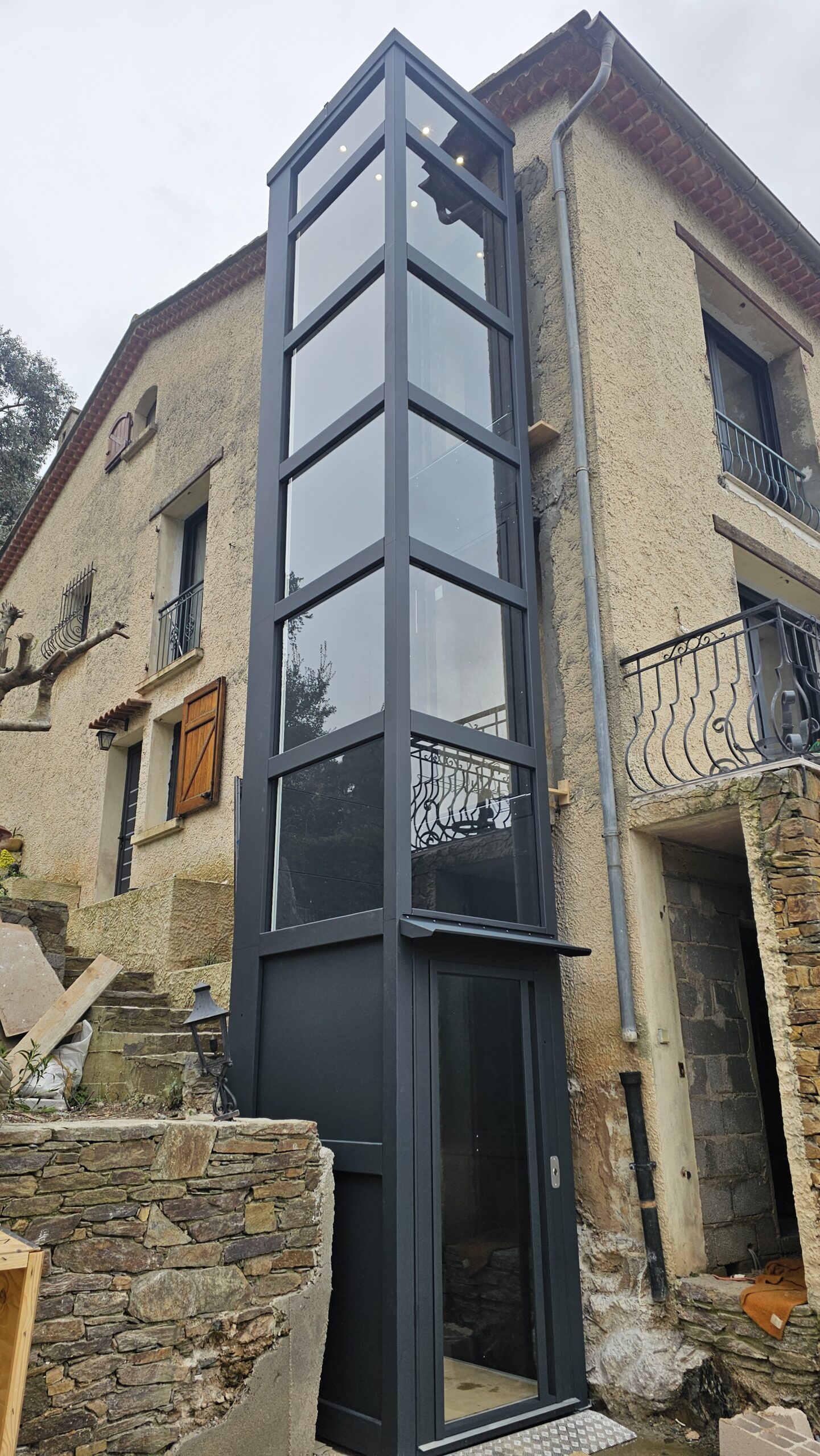Premier Ascenseurs a réalisé l’installation d’un ascenseur de maison extérieur à Hyères (Var), conçu sur mesure dans le cadre d’une rénovation complète.