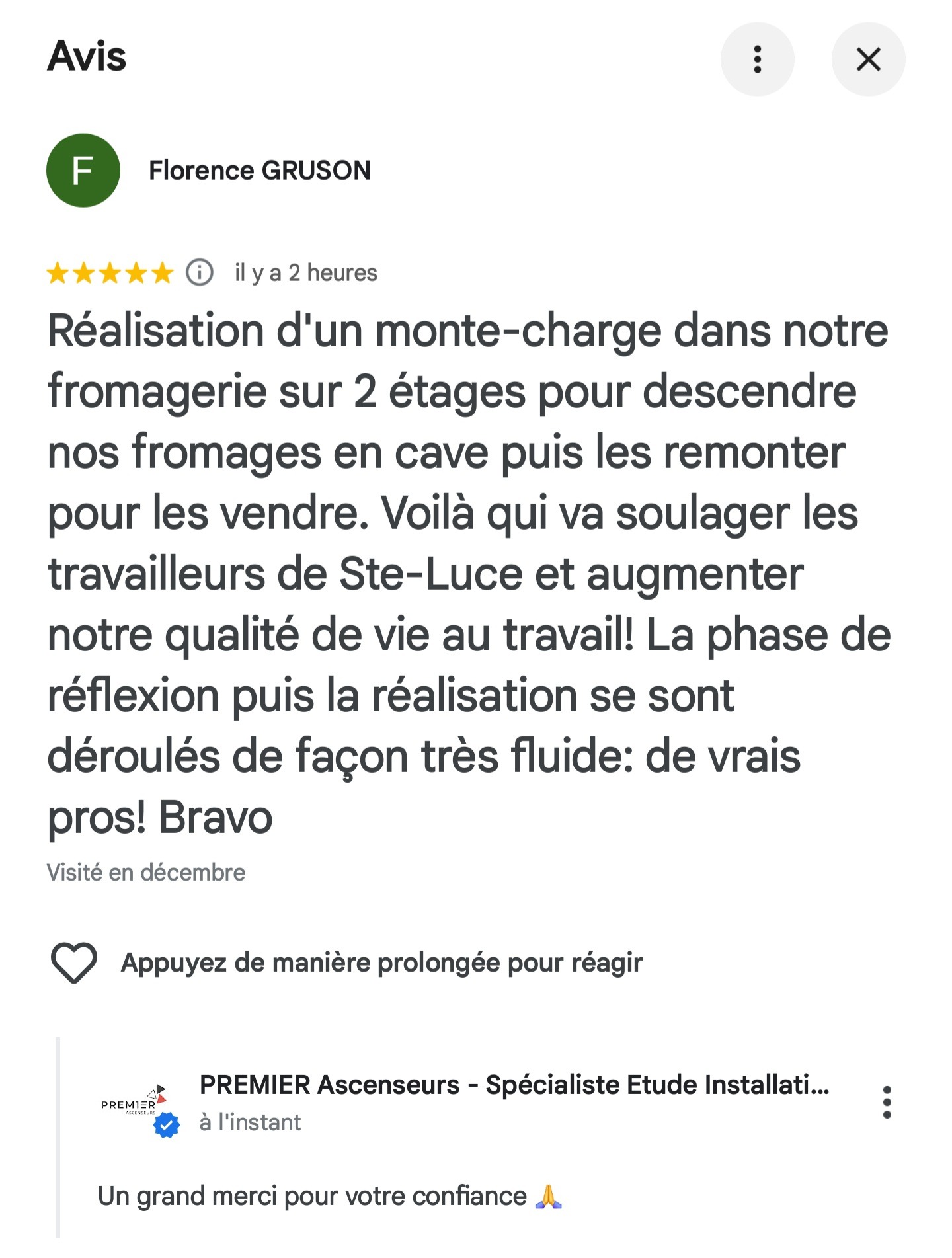 La Fromagerie de Sainte-Luce a salué la qualité de l’accompagnement, la fiabilité de la solution installée et la coordination efficace entre PREMIER ASCENSEURS et BKG FRANCE.