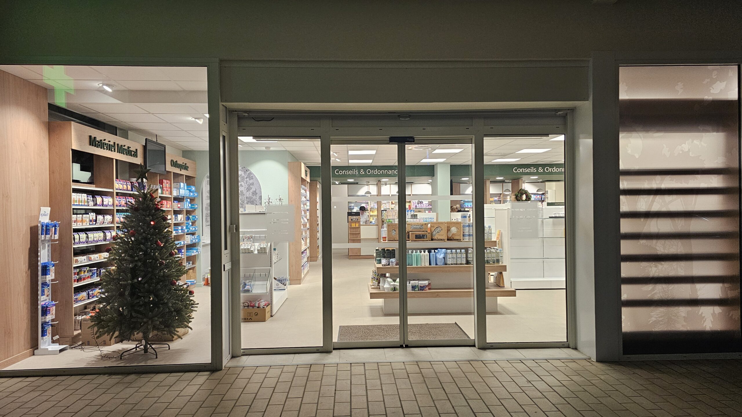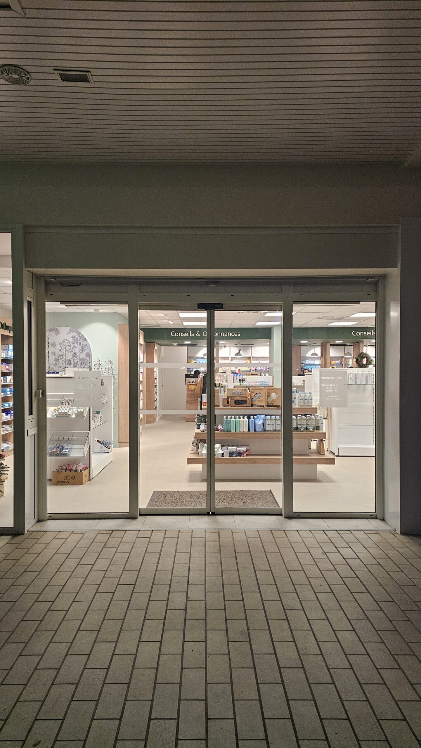 AprĂšs analyse des flux et de la configuration de lâentrĂ©e, le choix sâest portĂ© sur une porte piĂ©tonne automatique Ă 2 vantaux, parfaitement adaptĂ©e aux besoins dâune pharmacie moderne.
