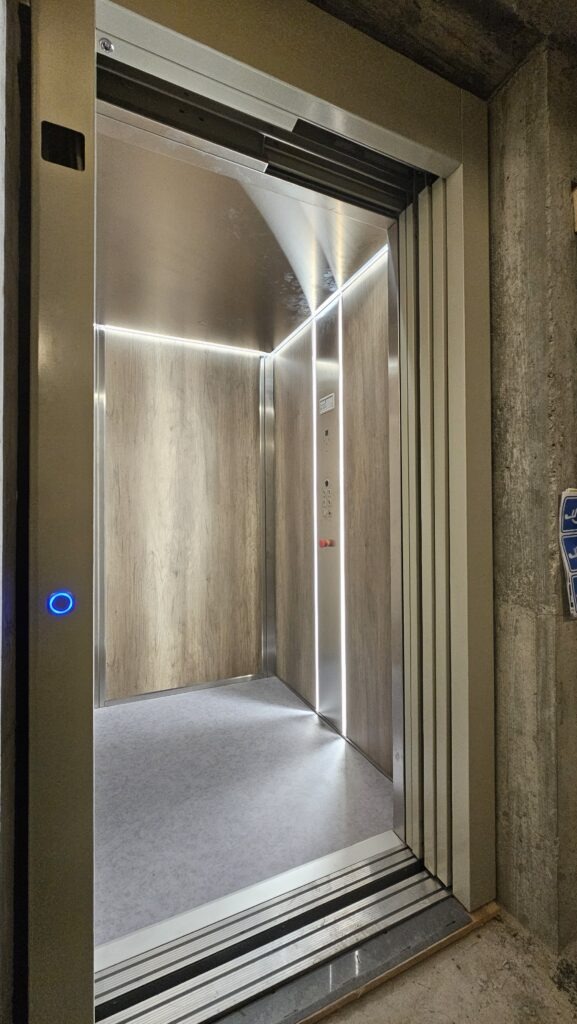 La solution retenue a été l’installation d’un élévateur PMR avec cabine et portes automatiques, parfaitement adapté à ce type d’établissement.